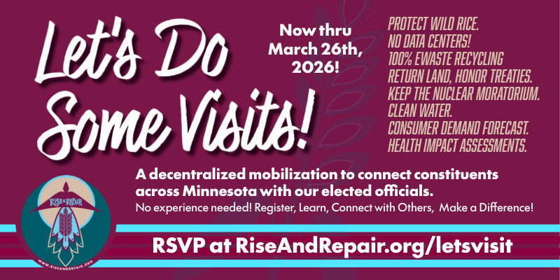 Join us for this year's decentralized lobby effort to advance climate justice & Indigenous rights in Minnesota. No experience needed - RSVP below and we'll be working to support you and your district team to arrange a meeting with your elected official(s) between now and March 26th, 2026 (before the first & second legislative deadlines).